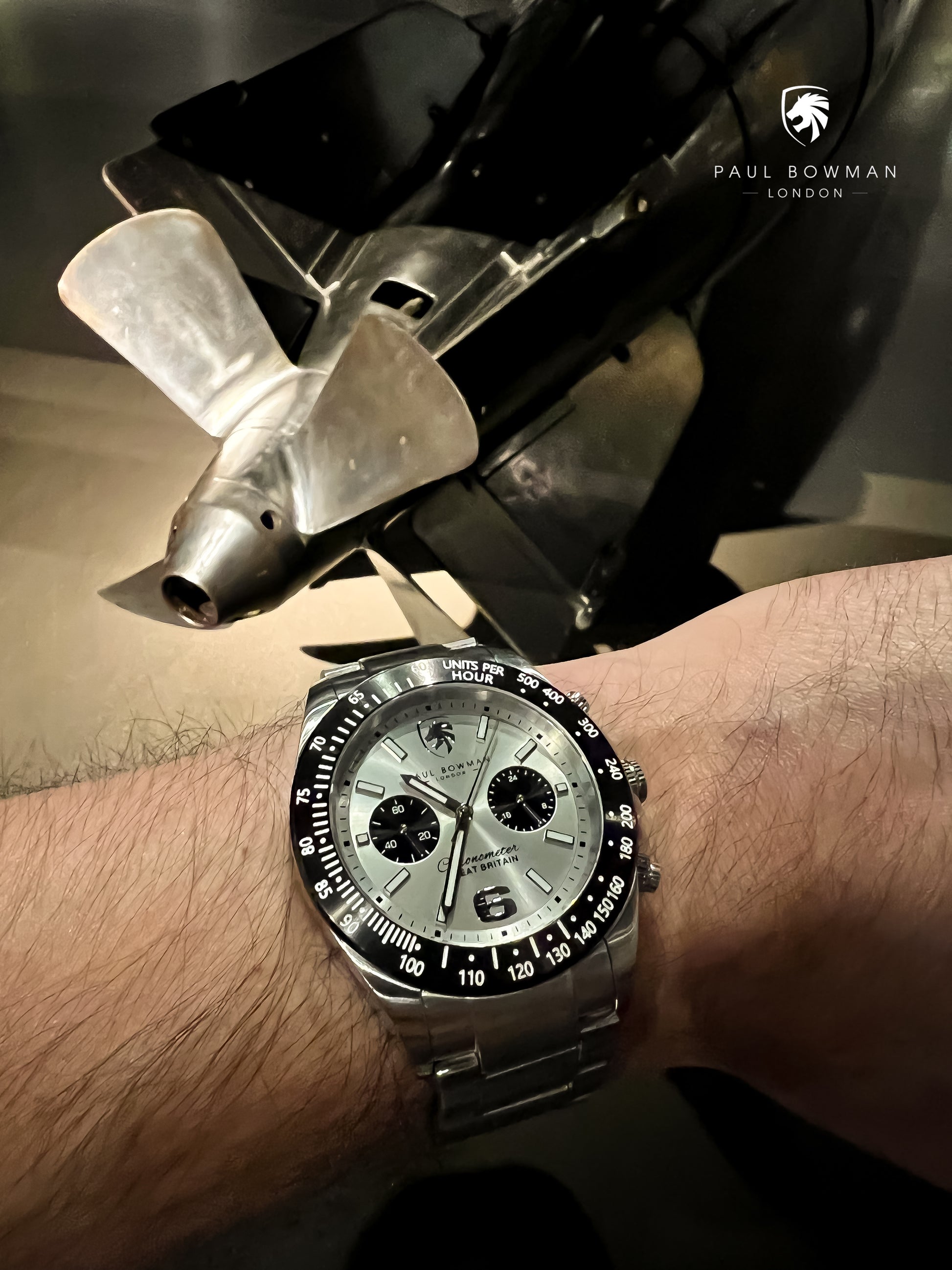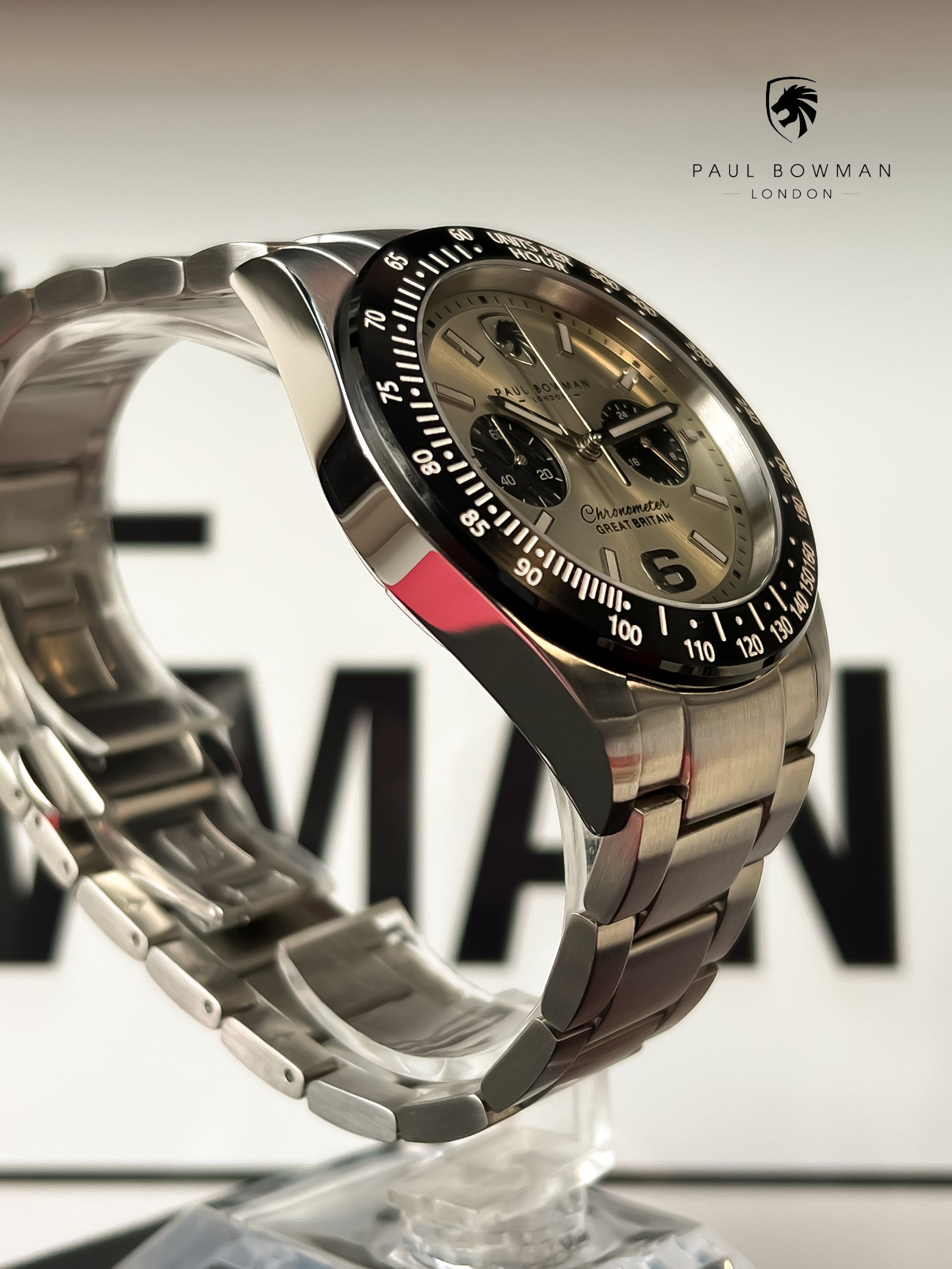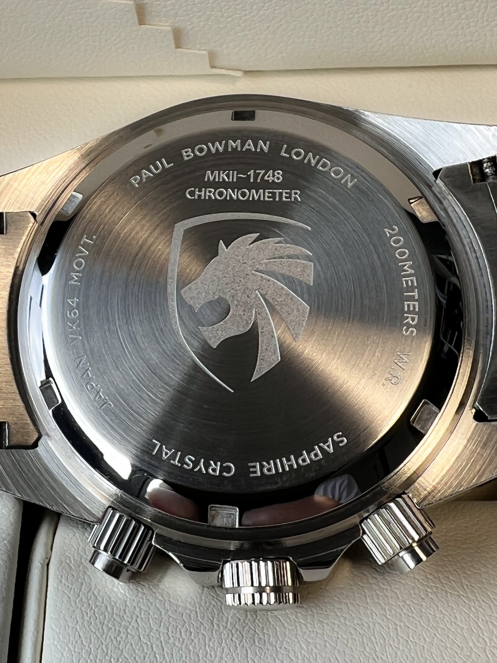 protected with a Sapphire crystal, features a screw-down crown, screw-down pushers and screw-down case-back, 200 meters of water-resistant, powered with a highly precise SII Corporation Mechanical/Hybrid VK64 movement, Certified by Paul Bowman London.