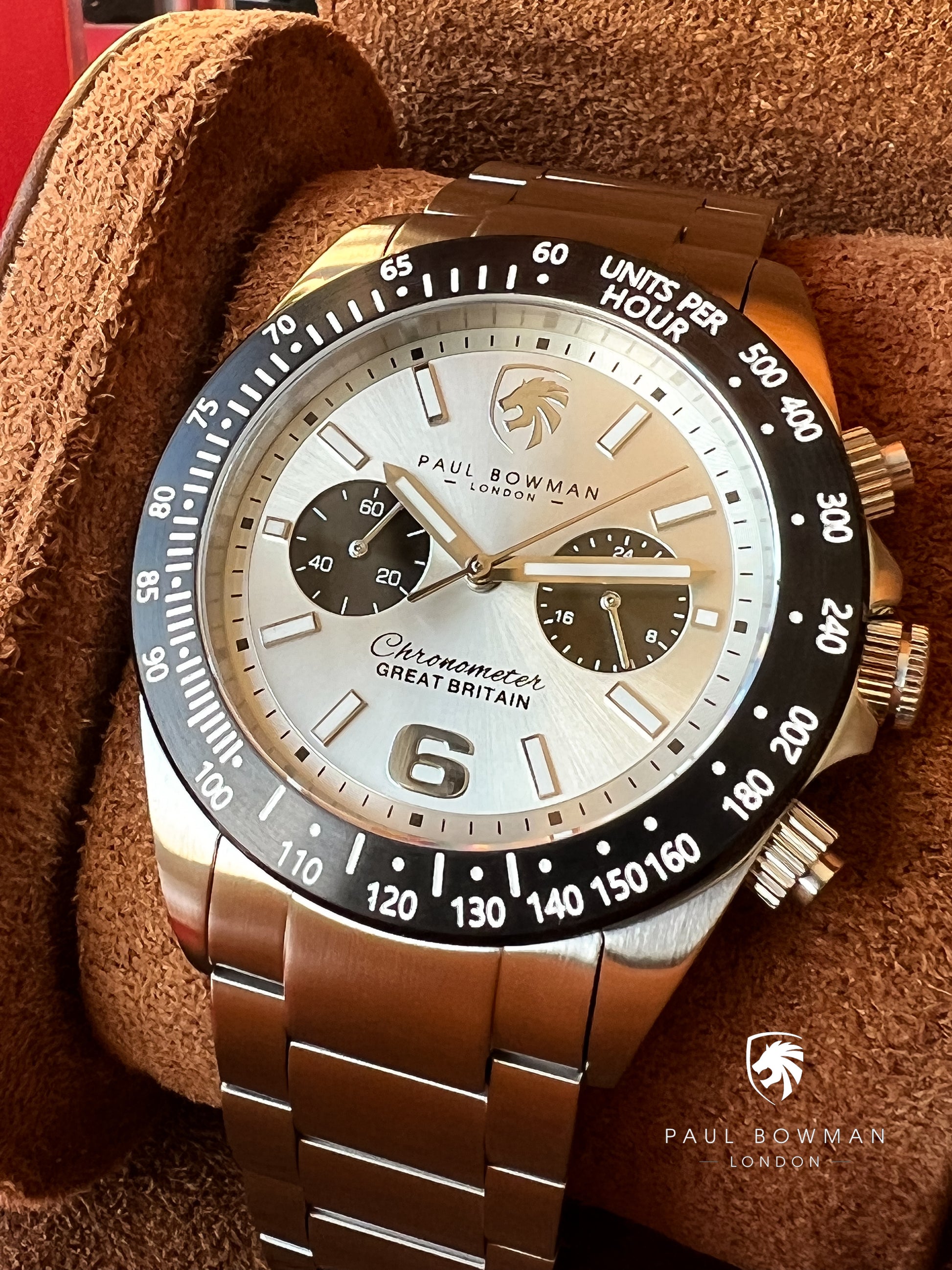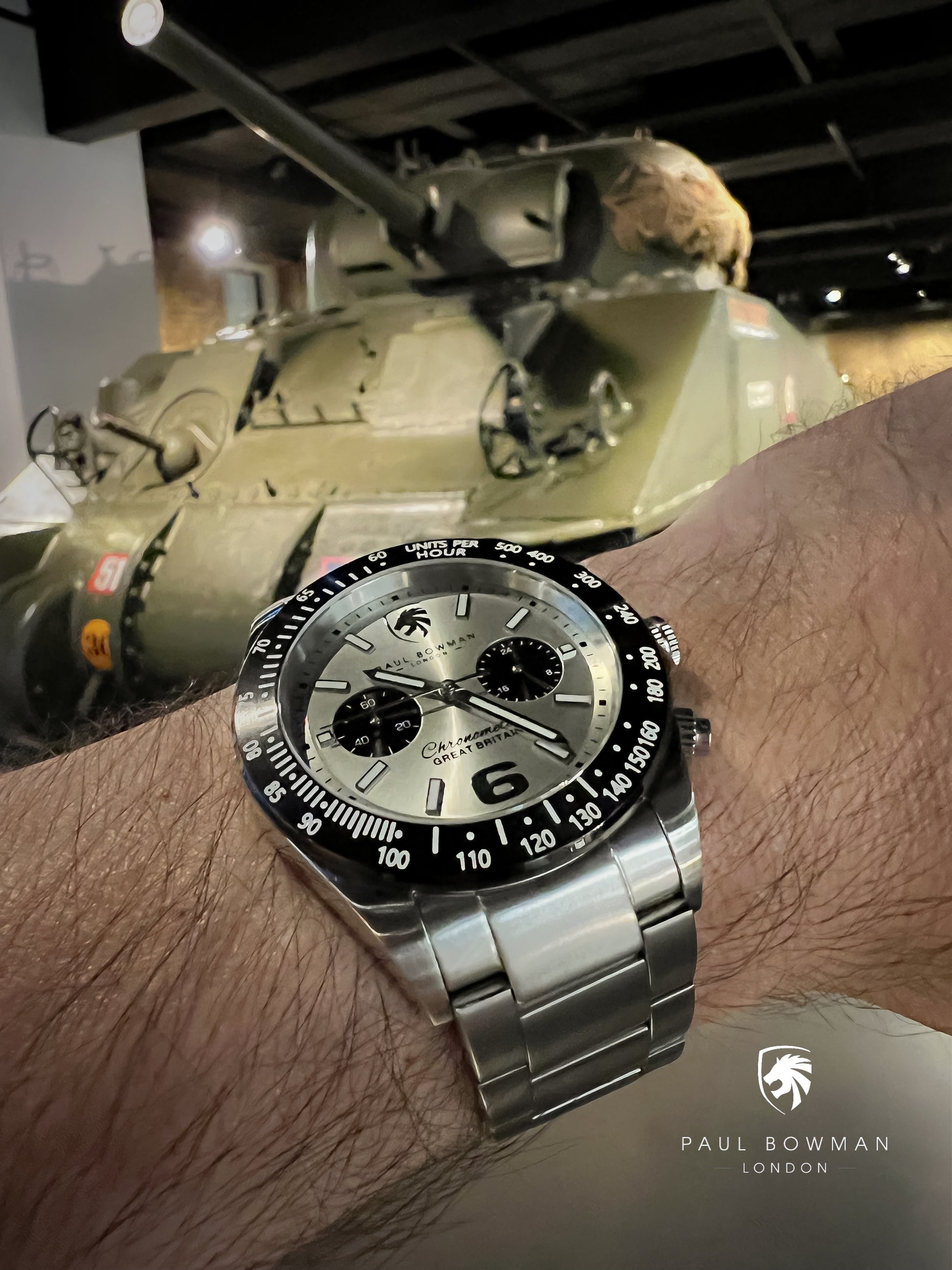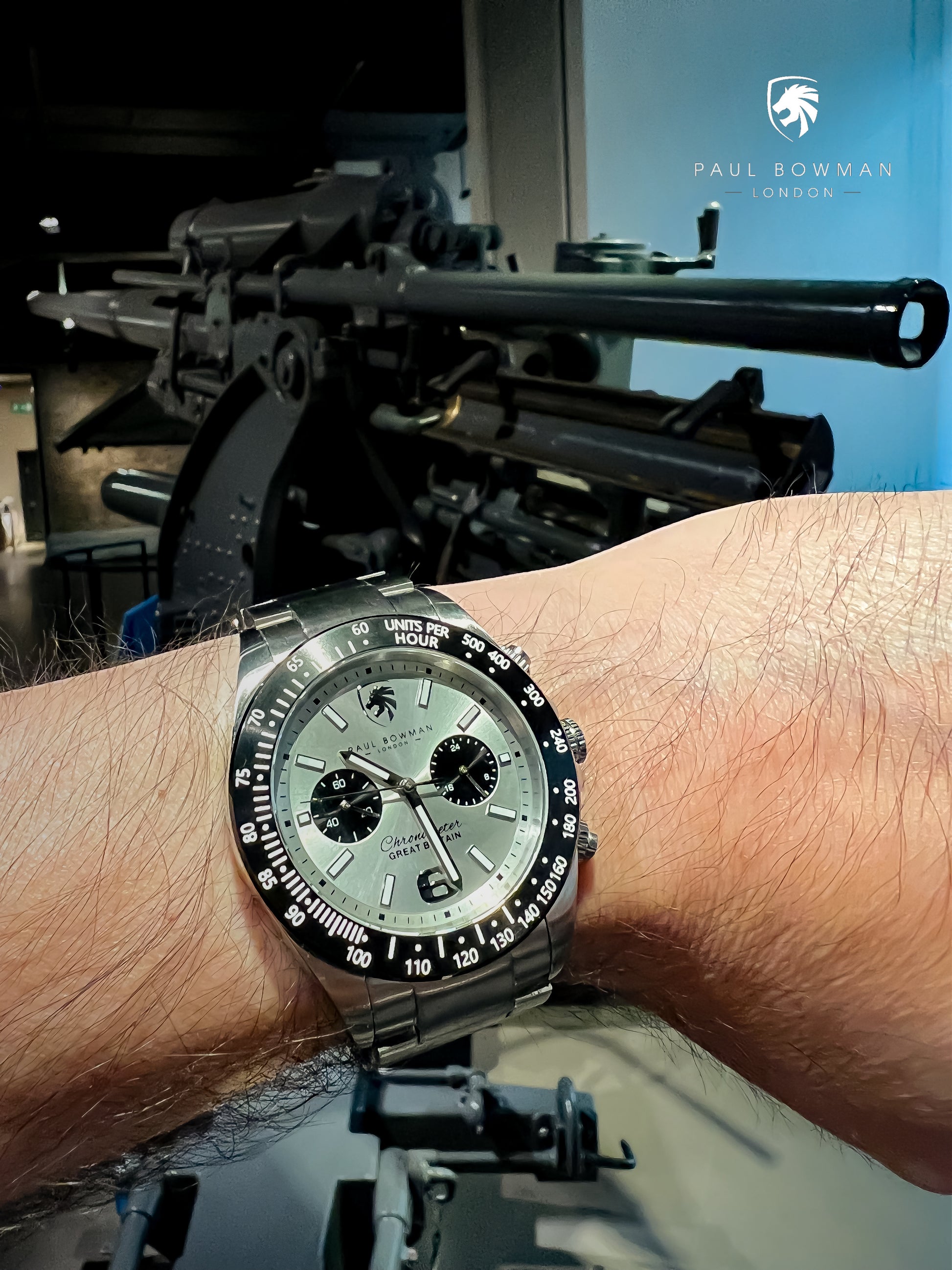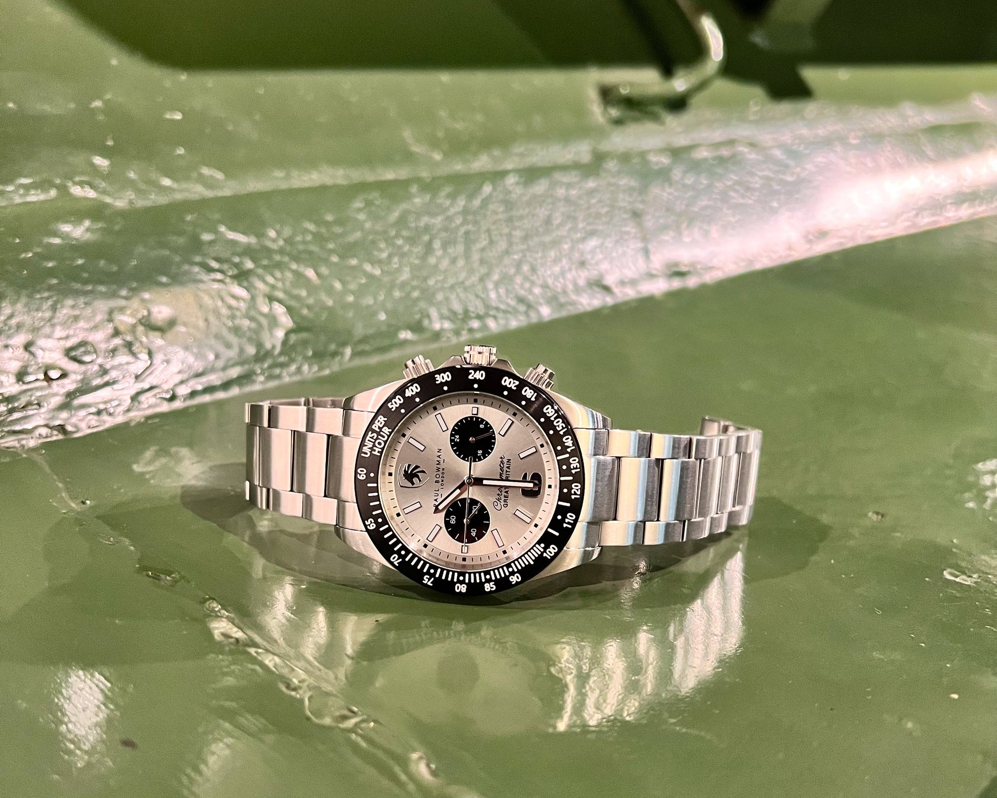 protected with a Sapphire crystal, features a screw-down crown, screw-down pushers and screw-down case-back, 200 meters of water-resistant, powered with a highly precise SII Corporation Mechanical/Hybrid VK64 movement, Certified by Paul Bowman London.