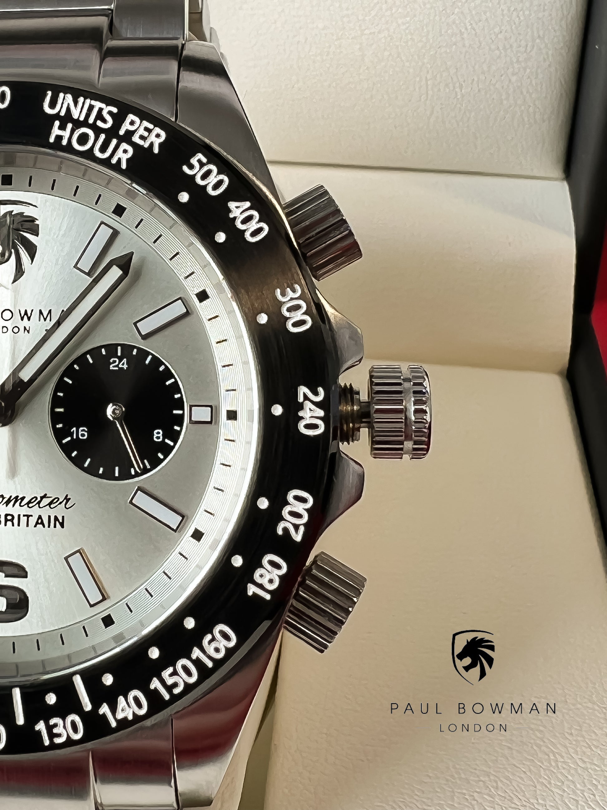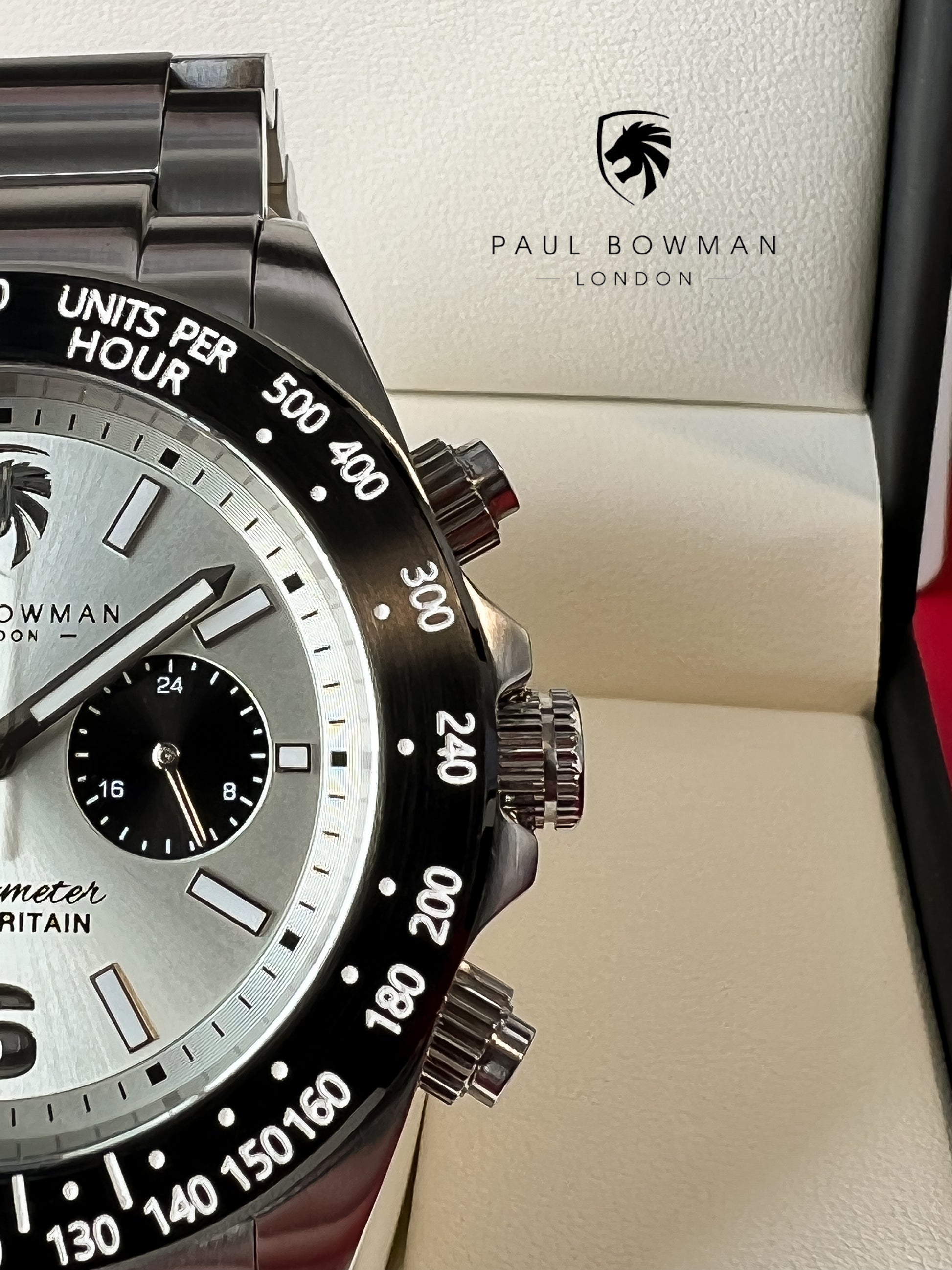 - Tachymeter bezel (Perfect to measurer average speeds)