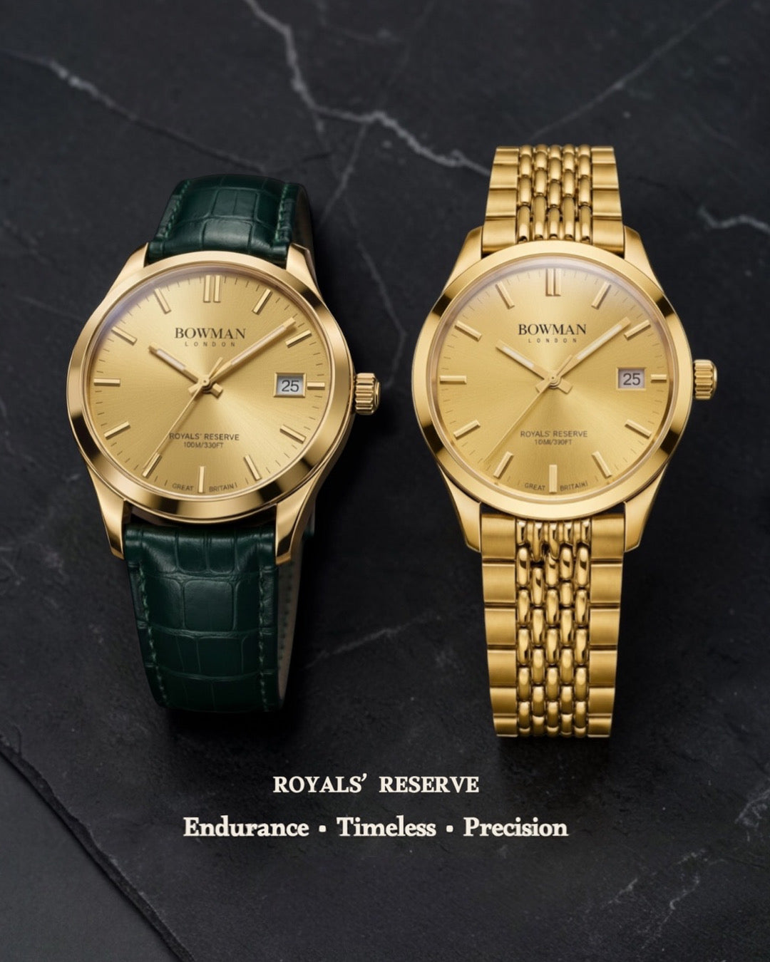 40mm dress watch draws inspiration from military heritage and royal occasions. It features a diamond-like carbon coating infused with 18-carat gold, blending durability with timeless brilliance. With diamond-cut finishing, an automatic movement offering a 42-hour power reserve, and a refined design, it’s crafted for those who seek resilience, elegance, and purpose in every detail.