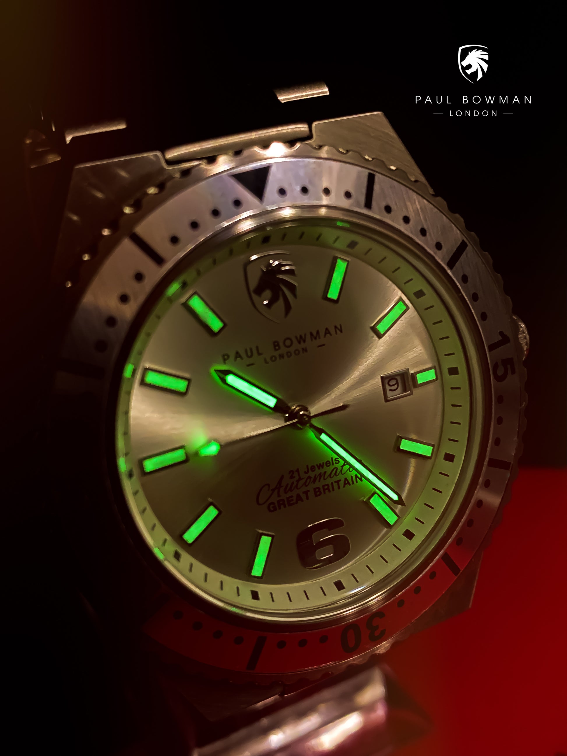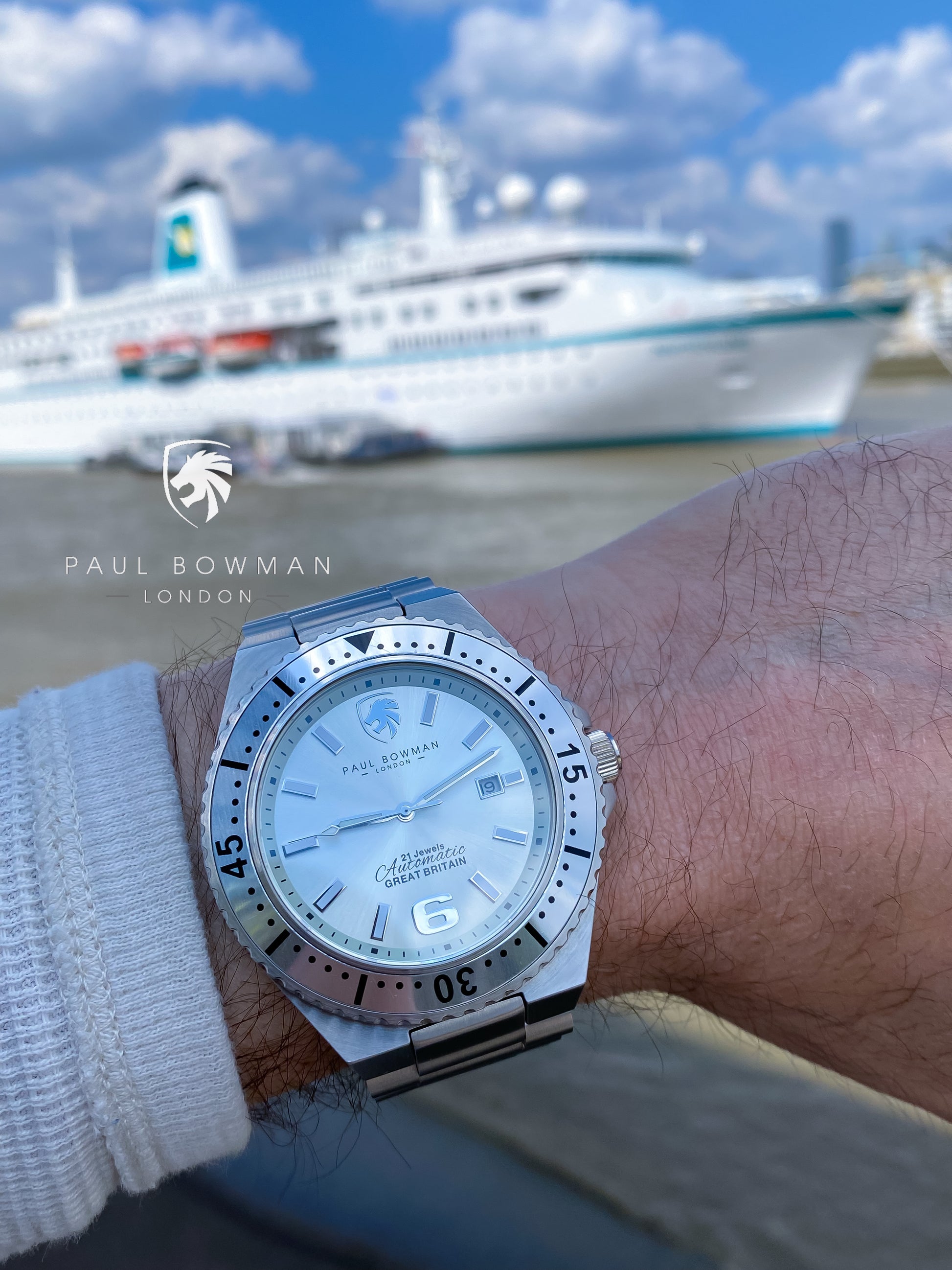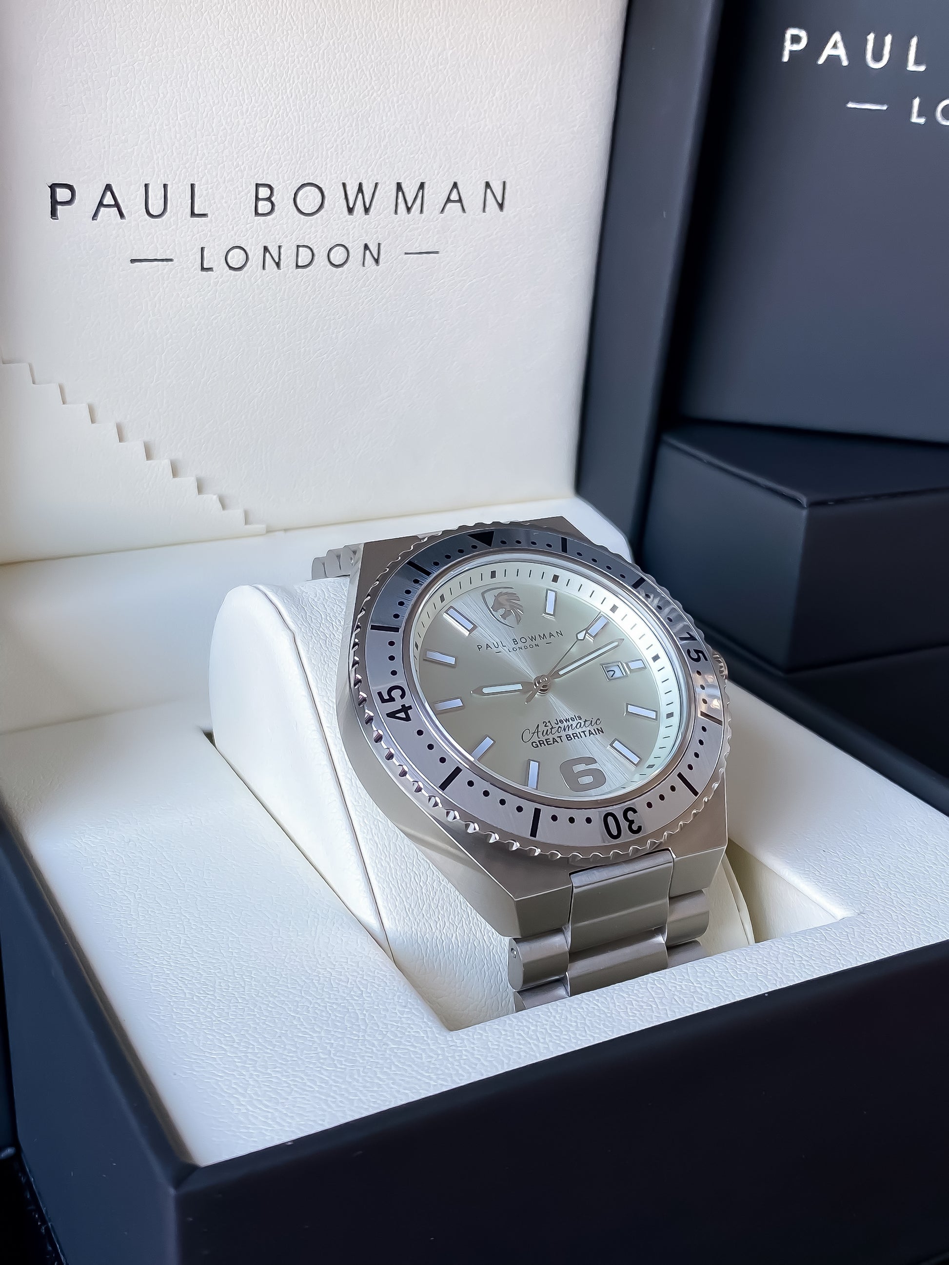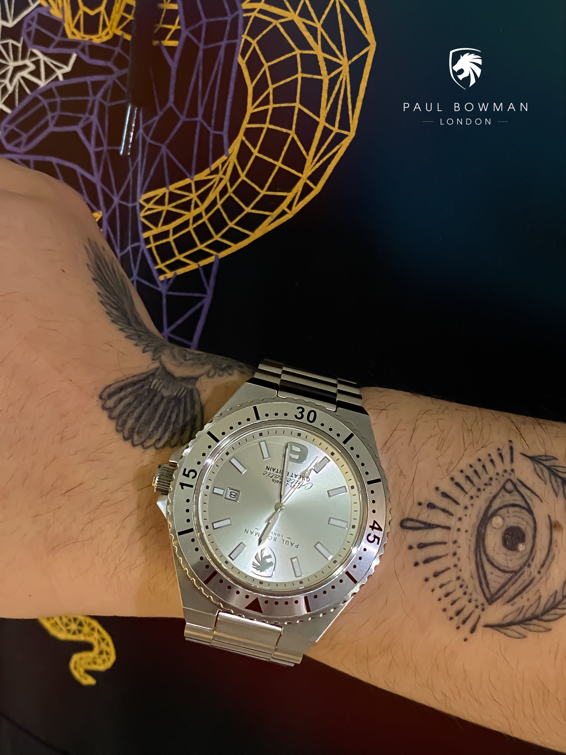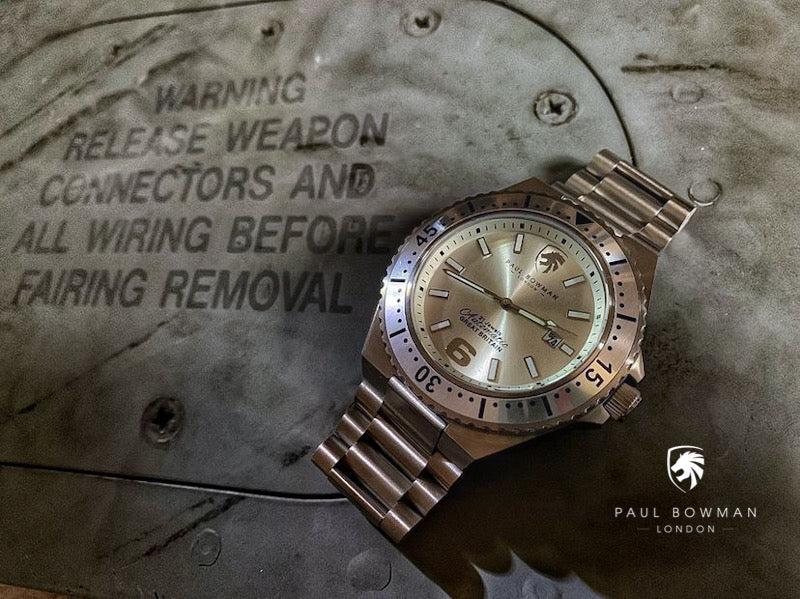Paul Bowman London proudly introduce its new Maritime range, The Royal Sea Tank MKIII, which is an incredibly tough, robust and very accurate timepiece, heavily built to last. But with all that toughness also comes with exquisite elegance, extremely comfortable, features a Sunburst light grey metallic dial, Sapphire crystal, 21 jewels Japan automatic movement and 200 meters of water resistance, will seat proudly on your wrist with commanding presence inspired on the Royal Navy Viking (BvS10) fully-amphibious vehicle.