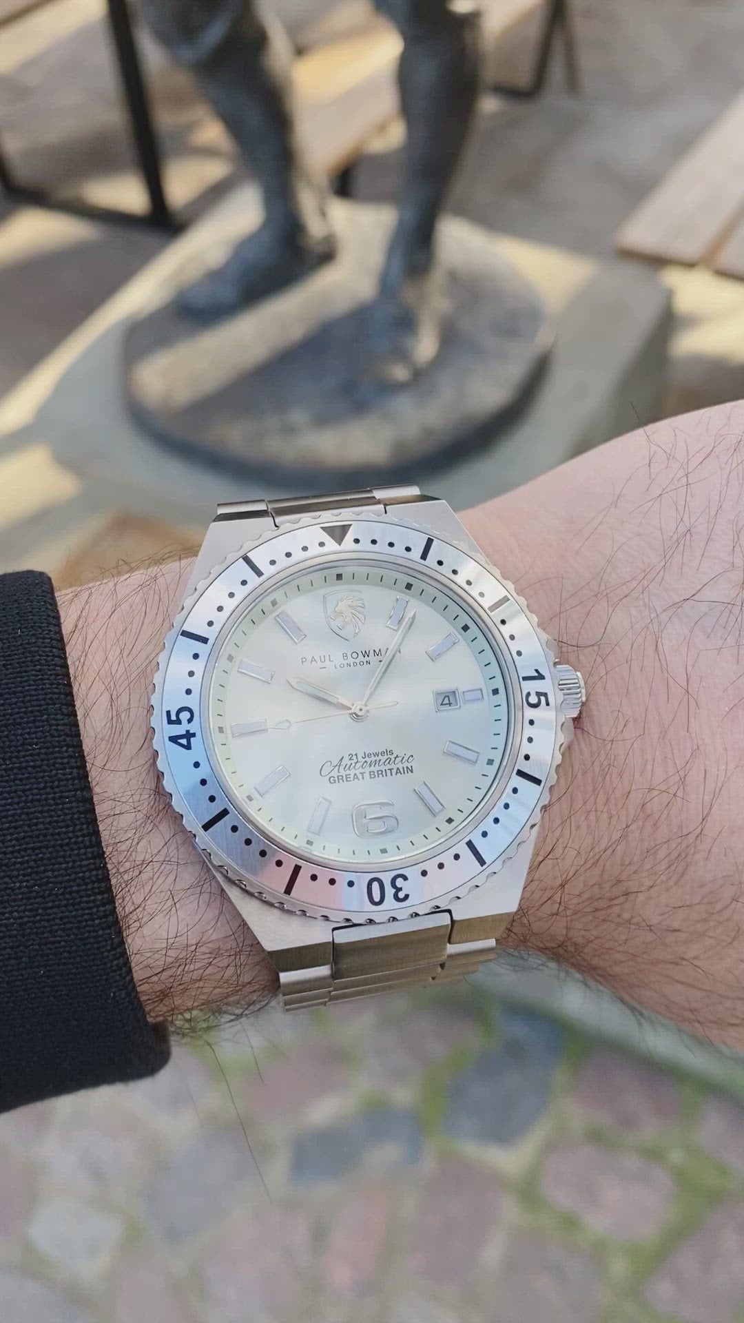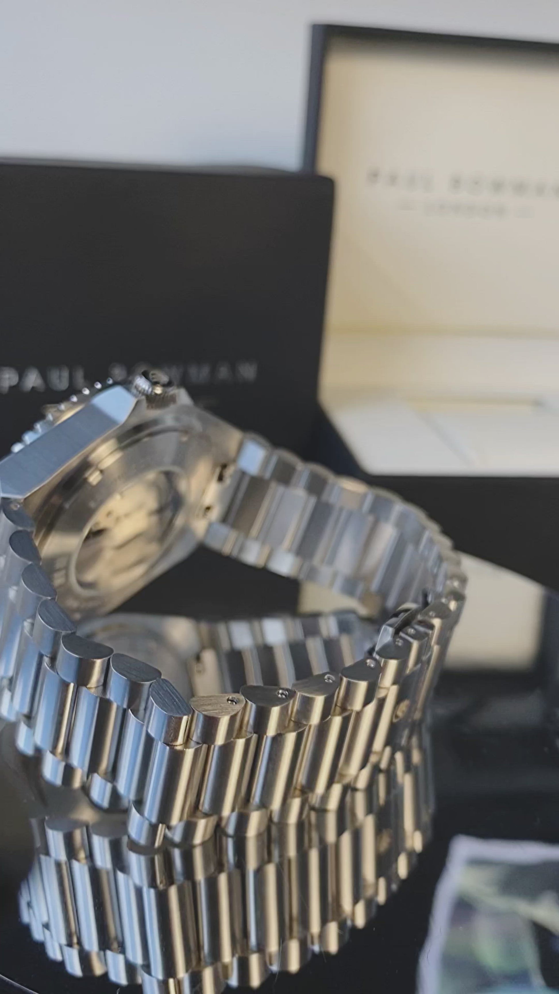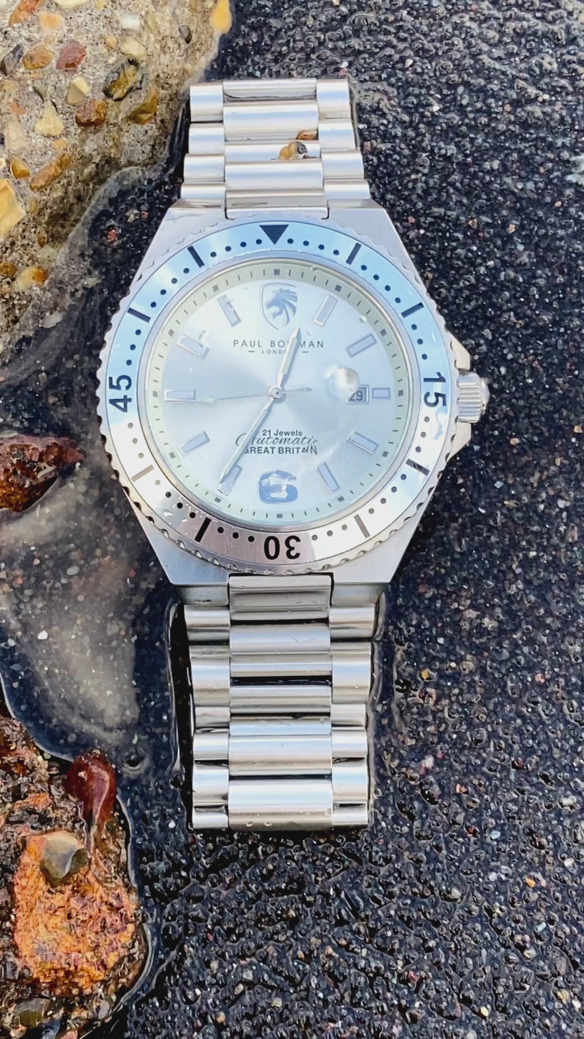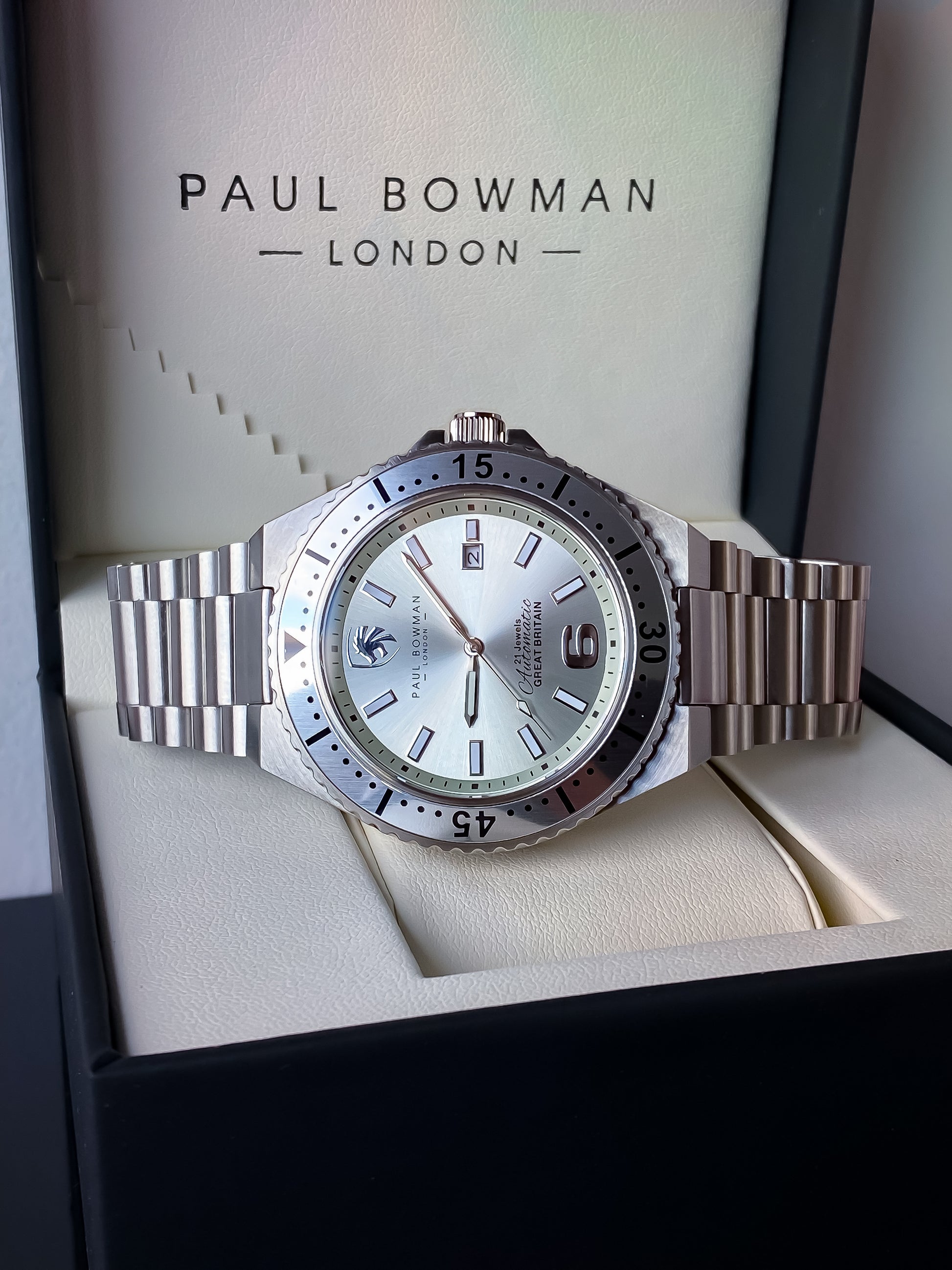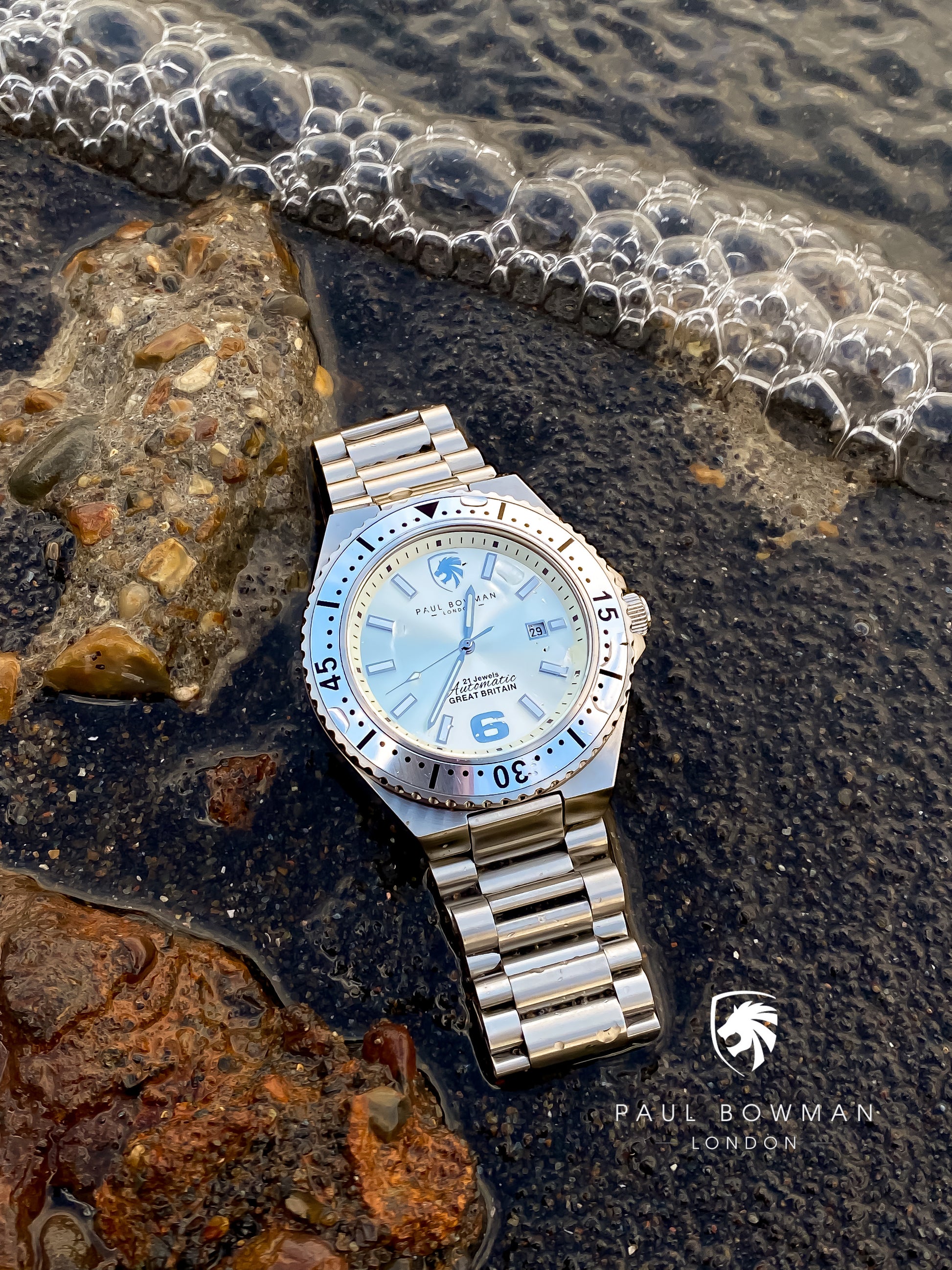 Paul Bowman London proudly introduce its new Maritime range, The Royal Sea Tank MKIII, which is an incredibly tough, robust and very accurate timepiece, heavily built to last. But with all that toughness also comes with exquisite elegance, extremely comfortable, features a Sunburst light grey metallic dial, Sapphire crystal, 21 jewels Japan automatic movement and 200 meters of water resistance, will seat proudly on your wrist with commanding presence inspired on the Royal Navy Viking (BvS10) fully-amphibious vehicle.